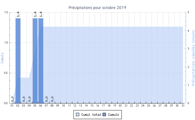 | Total | 4.8 °C | 22.6 °C | 12.3 °C | 1.9 km/h (30.3 km/h) | ENE |